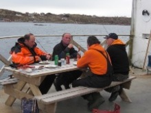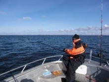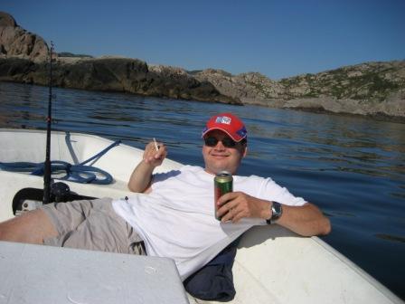 Wie immer waren aber auch Dorsche, Pollack und der Seelachse dabei. Wir hatten unseren Spaß, auch wenn Matze mit dem Seegang anfänglich Probleme hatte. Hätte er Abend mal lieber einige RUM-COLA in sich eingeflöst, da wär's bestimmt besser gewesen. Auch Norbi, unser "Engländer" hat sich nicht wie unsere Inselfreunde ans Bier gehalten sondern schätzte den Geschmack vom Zitronen-Ingwer Tee. Jedem das seine.