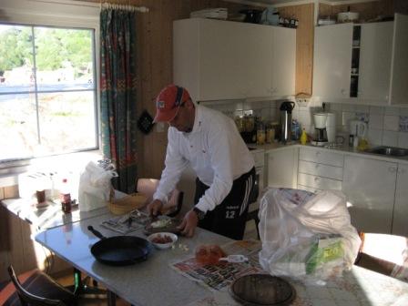 Einmal beim Pizza essen in Flekkefjord, einmal beim kochen in der Hütte. Die Mischung macht's.